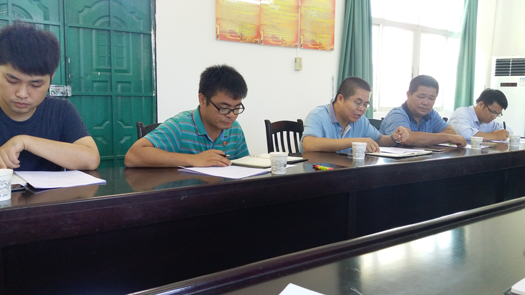 图为省路桥公司工会主席郭春武同志认真听取贫困户意见