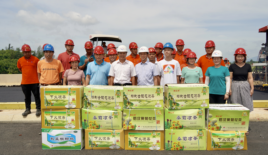 吴清新常务副主席将凉茶、菊花茶、毛巾等防暑降温物品亲自送到一线施工人员手中,亲切慰问坚守施工岗位的一线施工人员,叮嘱他们做好防暑降温工作,工作期间牢记安全生产,切实把党和政府、工会组织的关心、关爱送到员工心坎上。省路桥公司吴卓科指挥长表示,万洋高速第一代建段将继续严格按照省国资委、省交通厅的工作部署,以精细化管理为抓手,不忘初心,牢记使命,用实际行动推进项目建设,为海南自贸区(港)建设当好开路先锋。