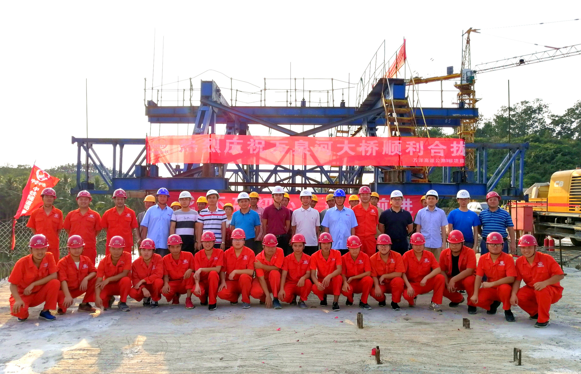 2019年4月8日下午,省路桥代建的万洋高速公路第一代建段万泉河大桥顺利合龙,这是海南省万宁至洋浦高速公路全线施工段首座完成合龙施工作业的悬臂现浇变截面钢构大桥,同时也标志着海南省万洋高速公路第一代建段WYTJ3标主体工程全部完工,为万洋高速公路顺利通车提供了有力保障。
