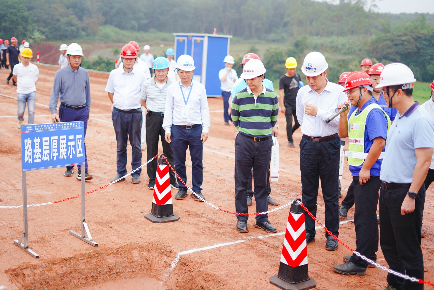 在观摩会上,省交通运输厅总工程师刘闯、省交建局局长王成斌、副局长李邦武、省质监局总工阳振中给予路基施工工艺高度评价与肯定,并就填挖交界处台阶法开挖及夯锤夯实工艺进行现场讨论,要求全省各重点项目参建单位通过观摩会,做好路基标准化施工的学习,进一步提升路基施工标准化水平,共同努力,把海南交通建设打造成品质工程、平安工地,为建设海南自贸港交出我们交通人的一份满意答卷。