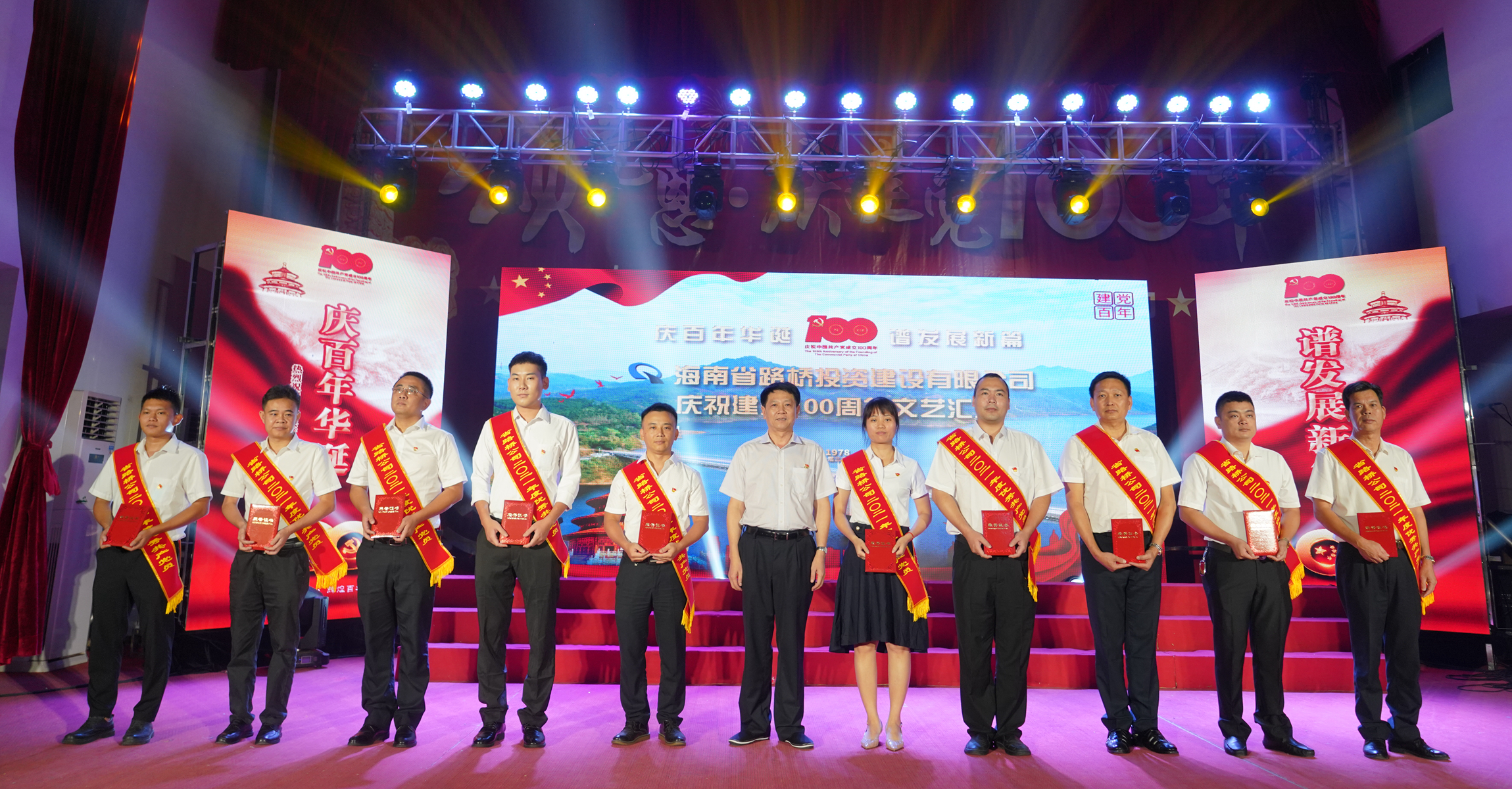6月22日晚,省路桥公司“庆祝建党100周年”文艺汇演活动在农垦总局西院礼堂举行,省国资委党委副书记孙维雄、党建工作处处长滕虎军应邀出席,省路桥公司系统近300名党员职工参加。