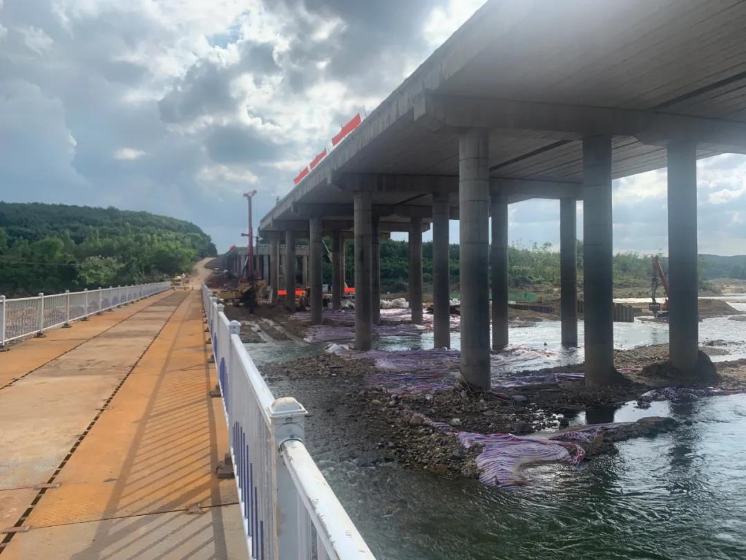 海南路桥集团自10月12日进驻珠碧江大桥抢险现场后,在各参建单位的密切配合下,各项工作正按时间节点有序推进。现场机器轰鸣,人声鼎沸,一派热火朝天,近两百名工人,三十部机械设备正争分夺秒推进抢修施工。
